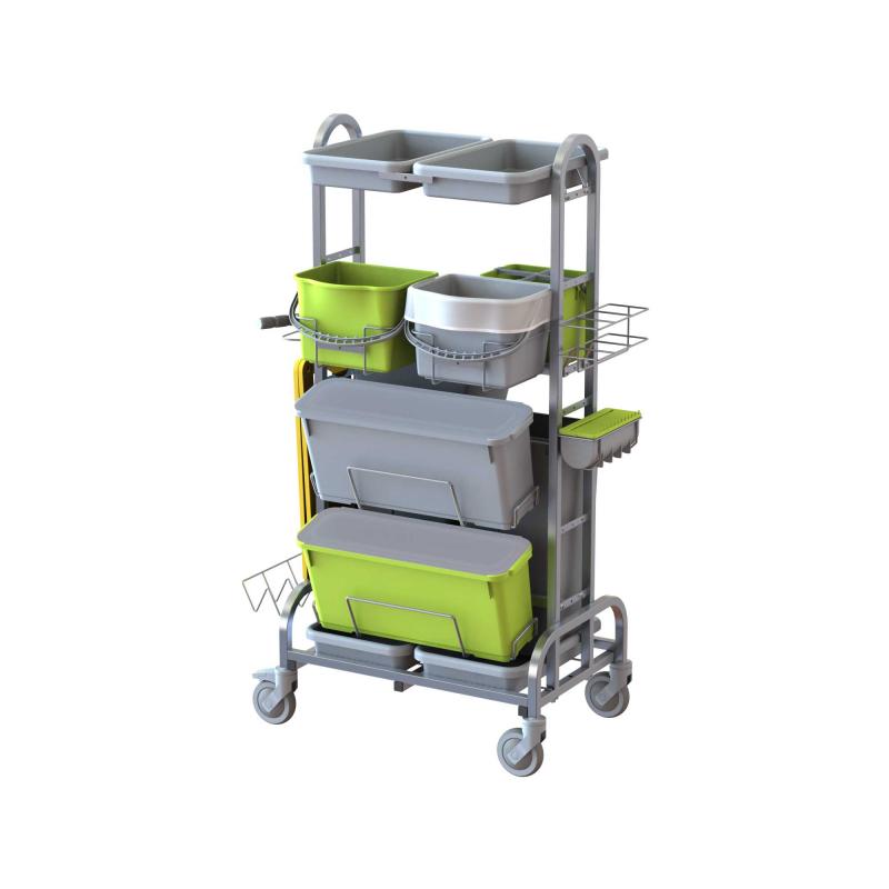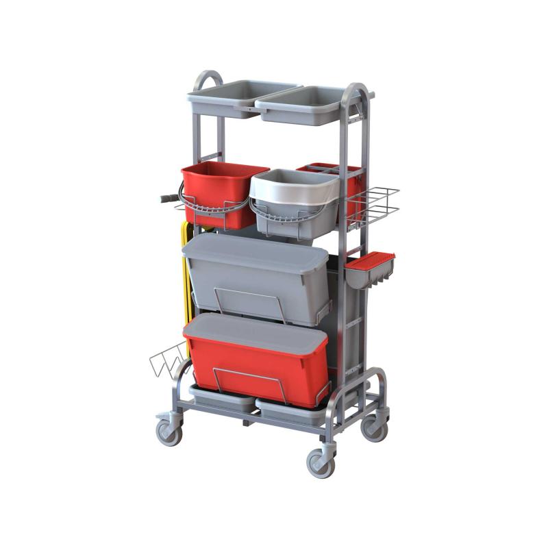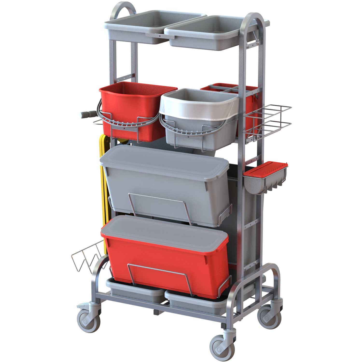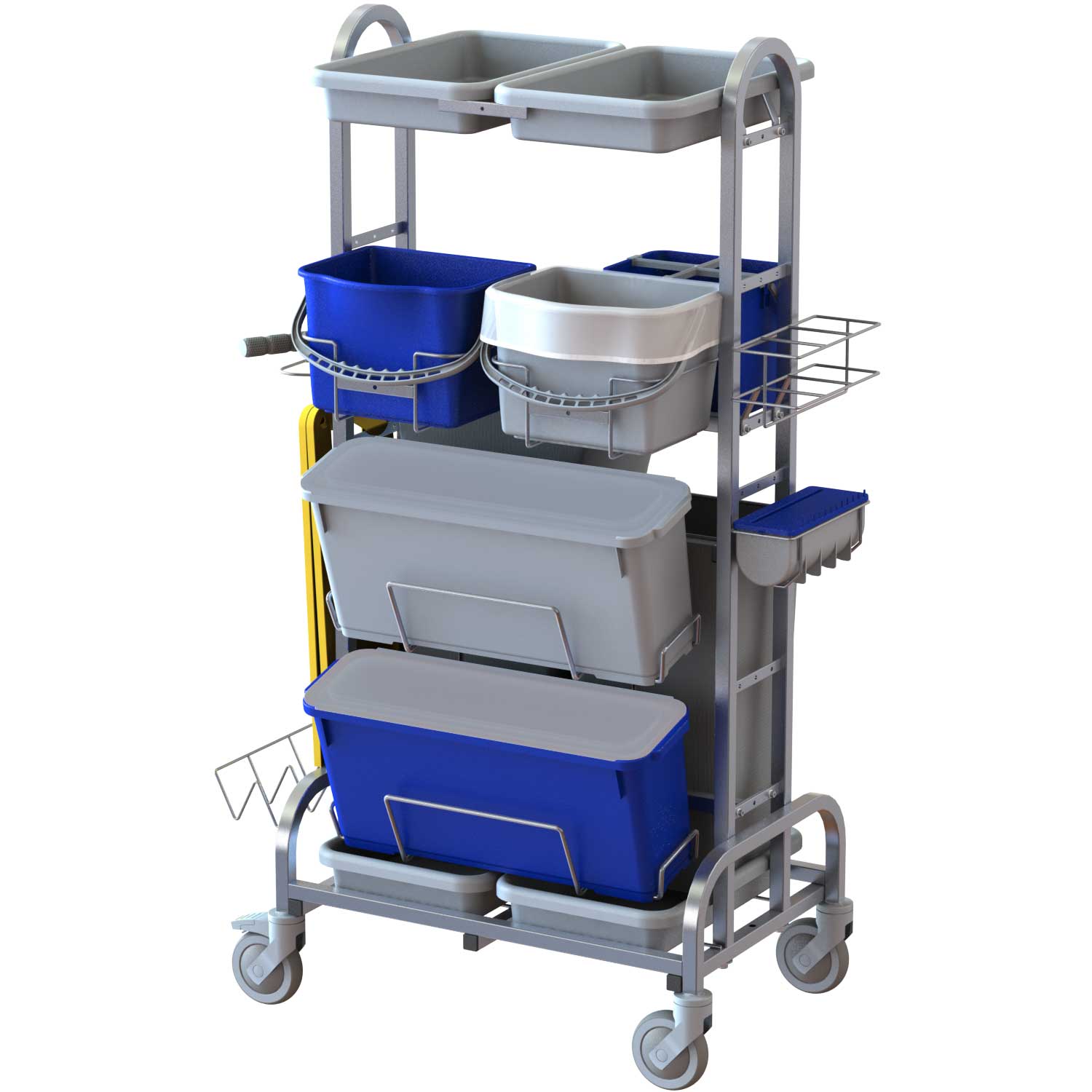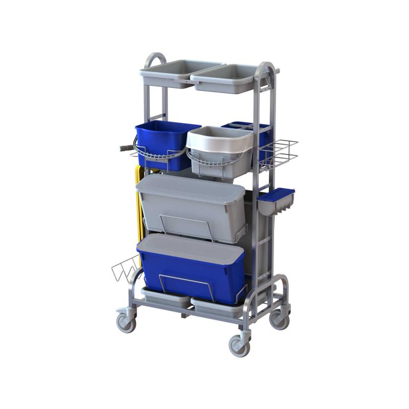 Le chariot MICRORAPID® COMPACT inox est un chariot de service et la position des seaux pour le lavage est particulière.