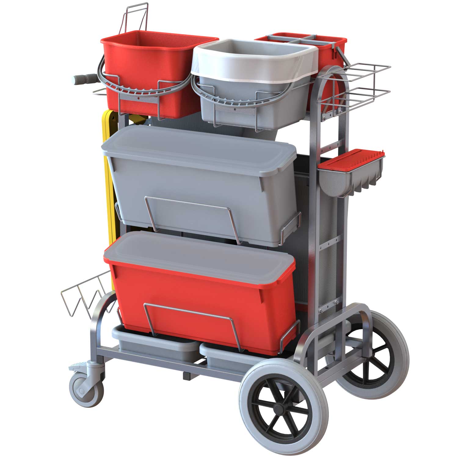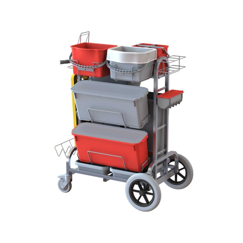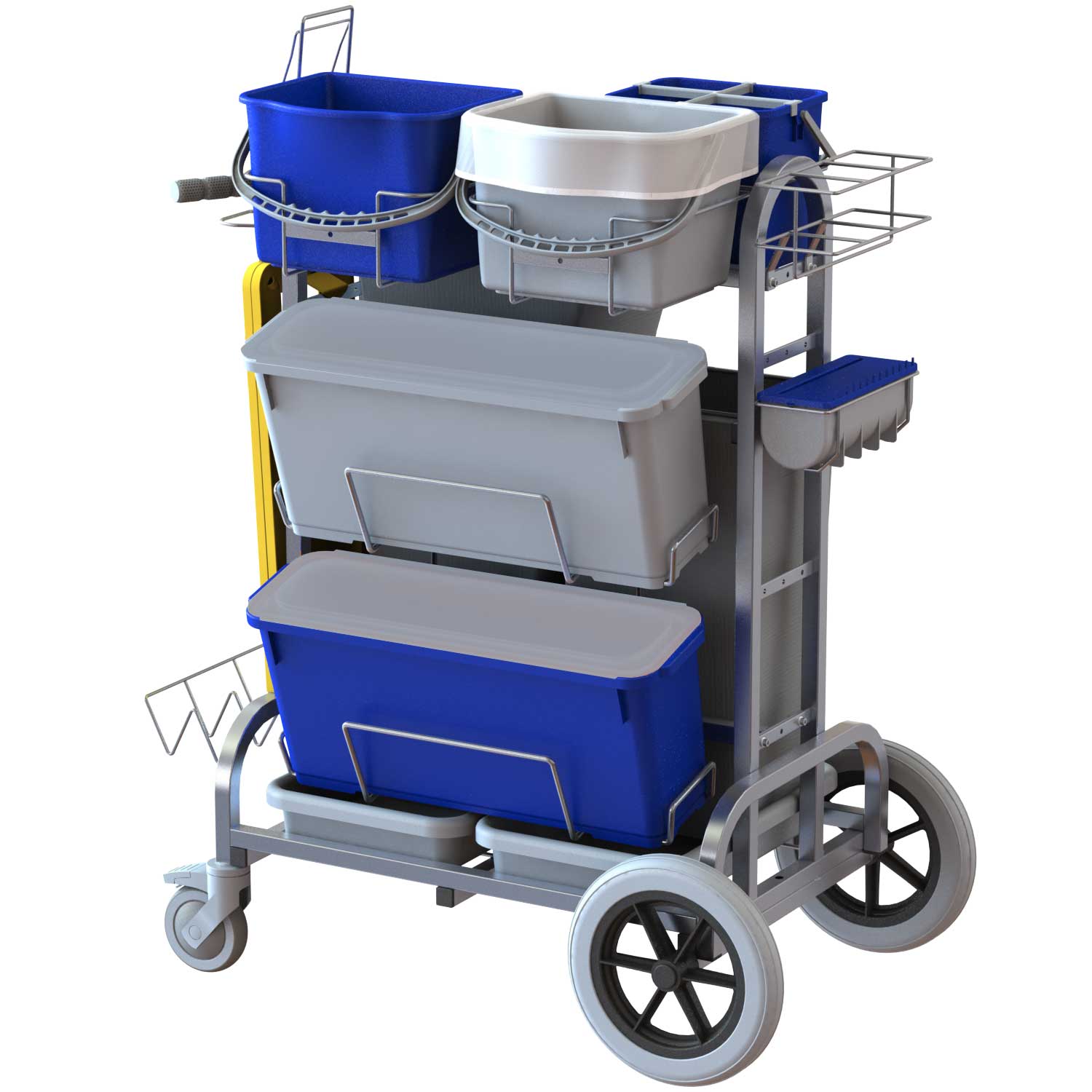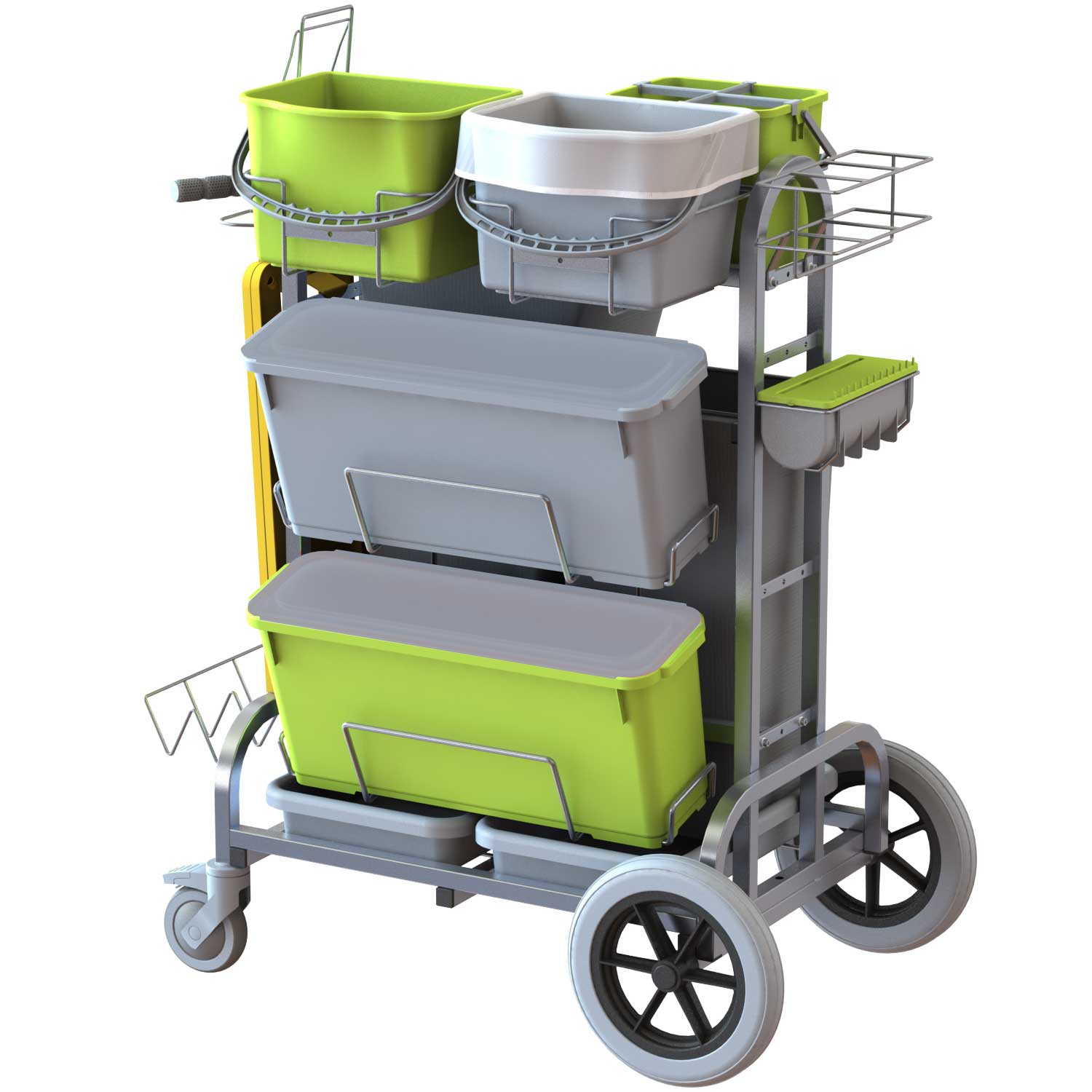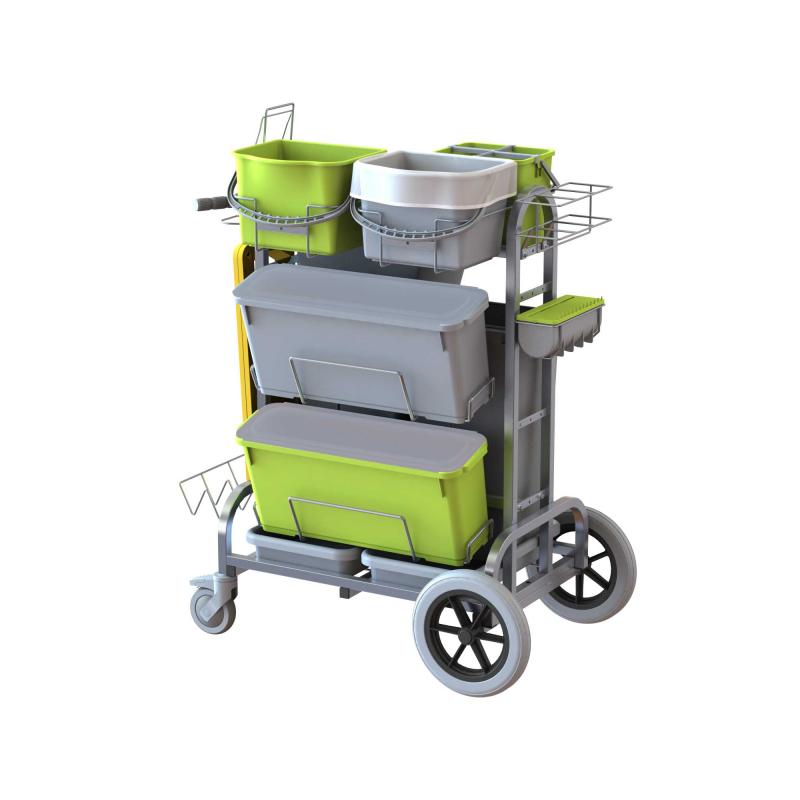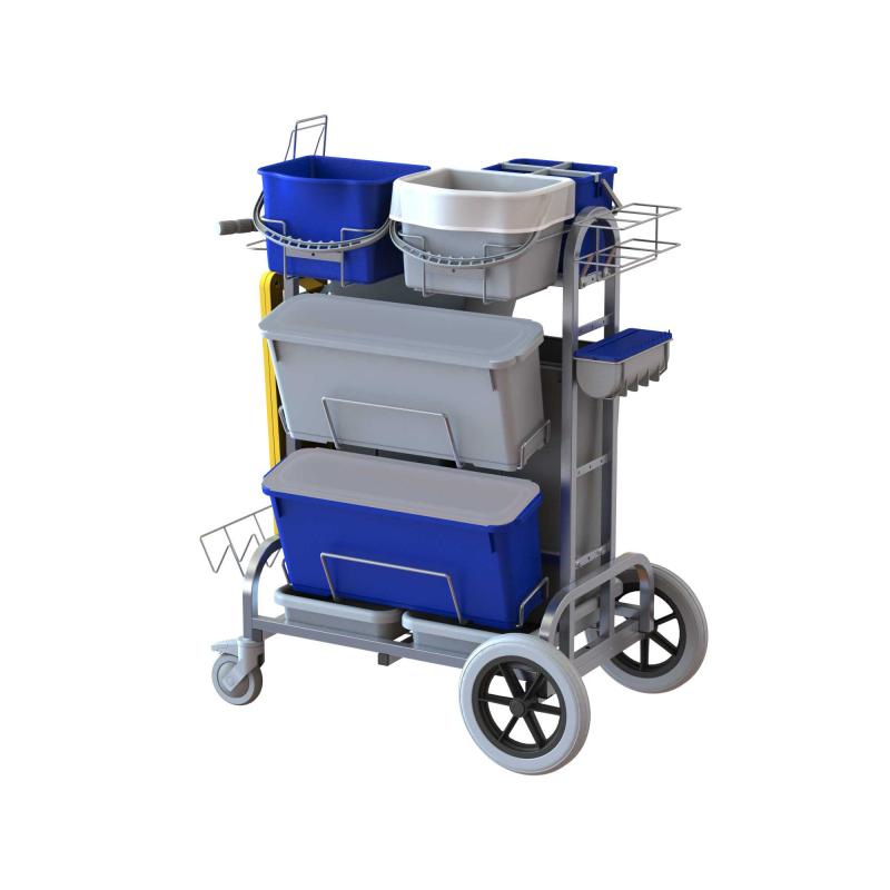 Le chariot MICRORAPID® COMPACT inox est un chariot de service et la position des seaux pour le lavage est particulière.