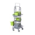 E' un carrello compatto per l’espletamento delle procedure di pulizia nelle cucine.