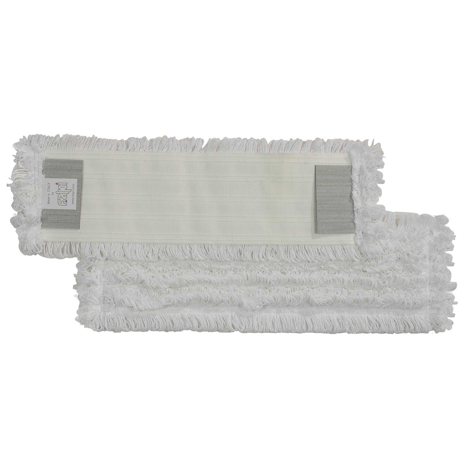 Wet mop for floor washing with cotton and synthetic fibers with wing hook system.