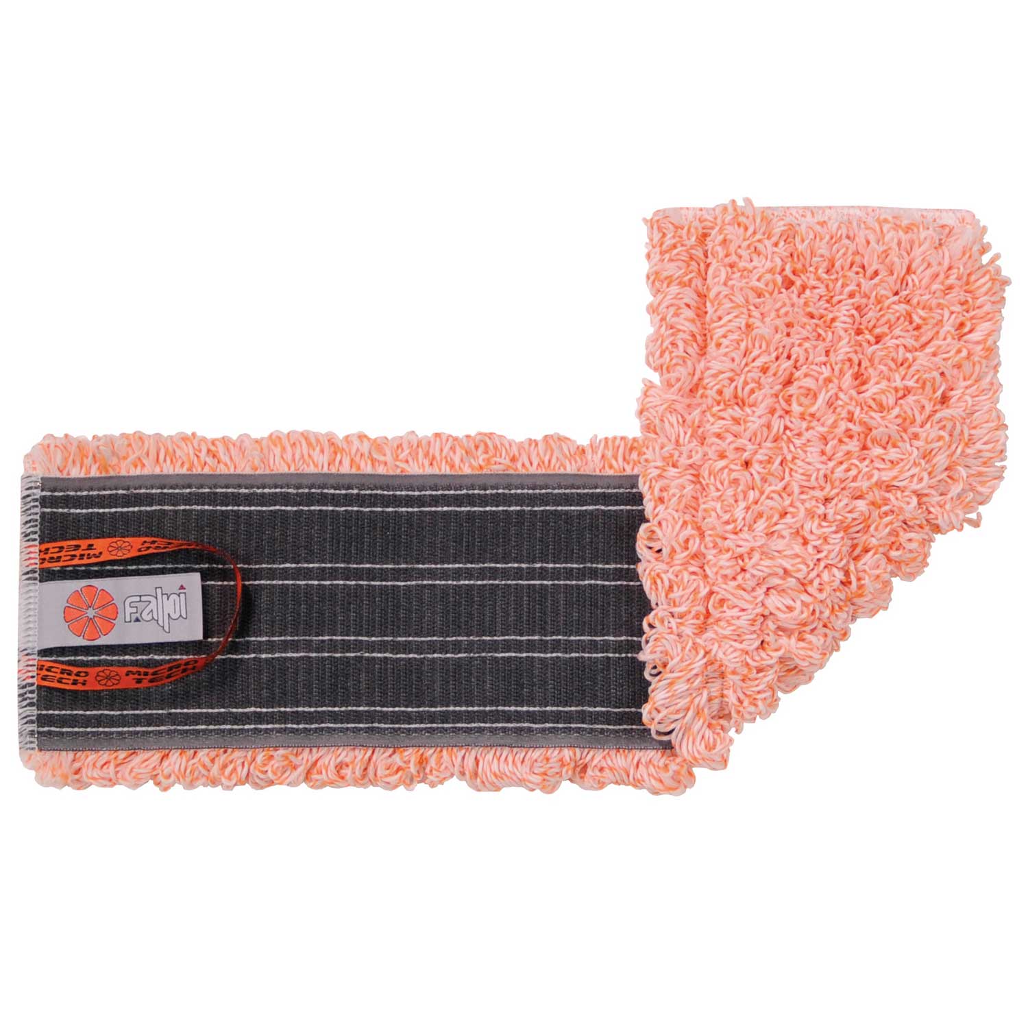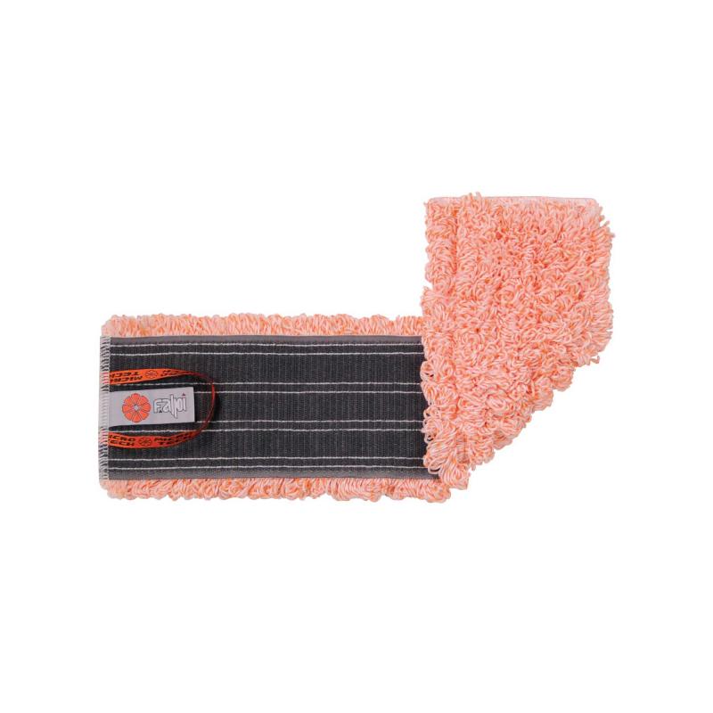 Microfiber floor-washing mop head with Loopfix hook-and-loop attachment.