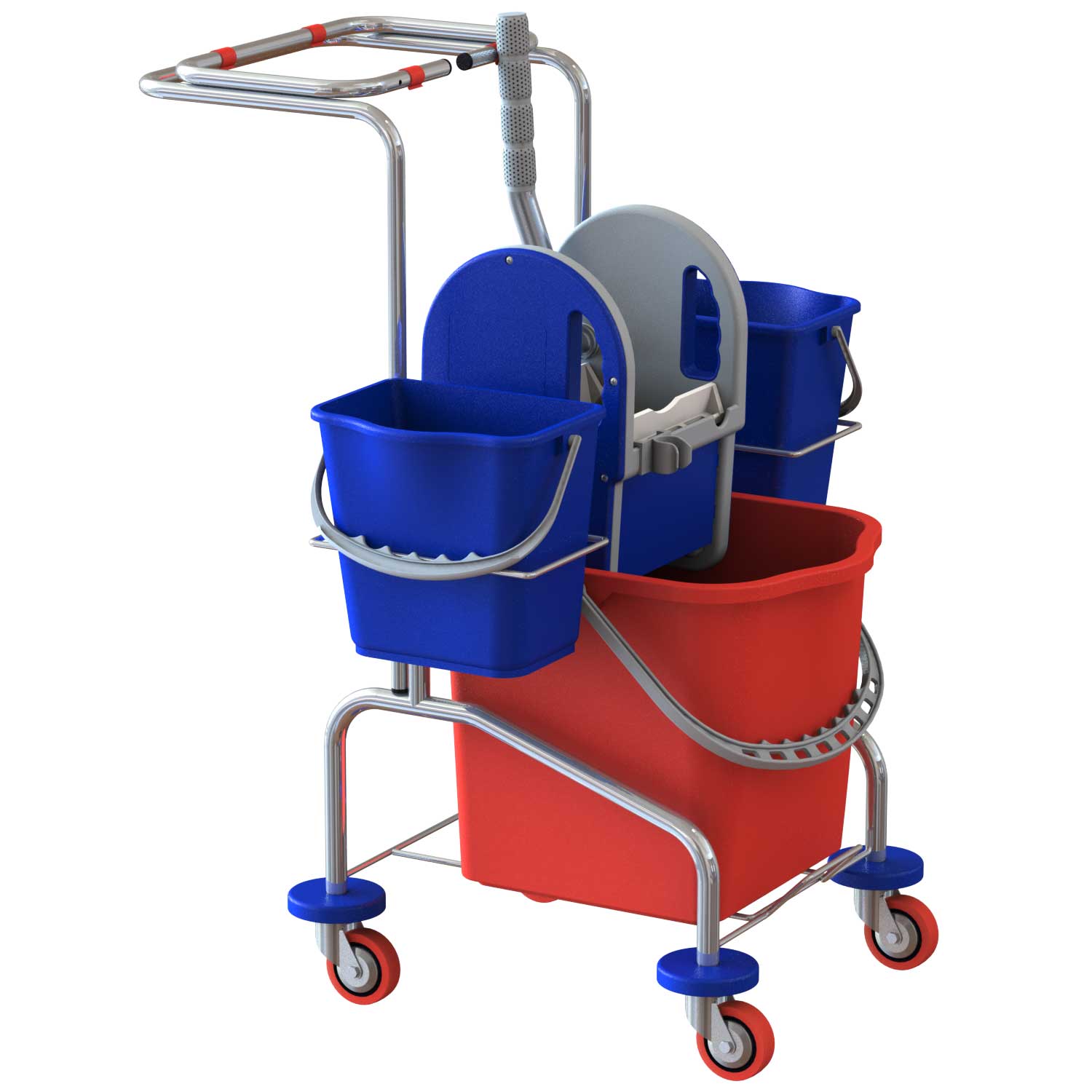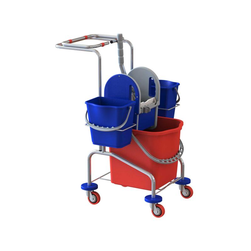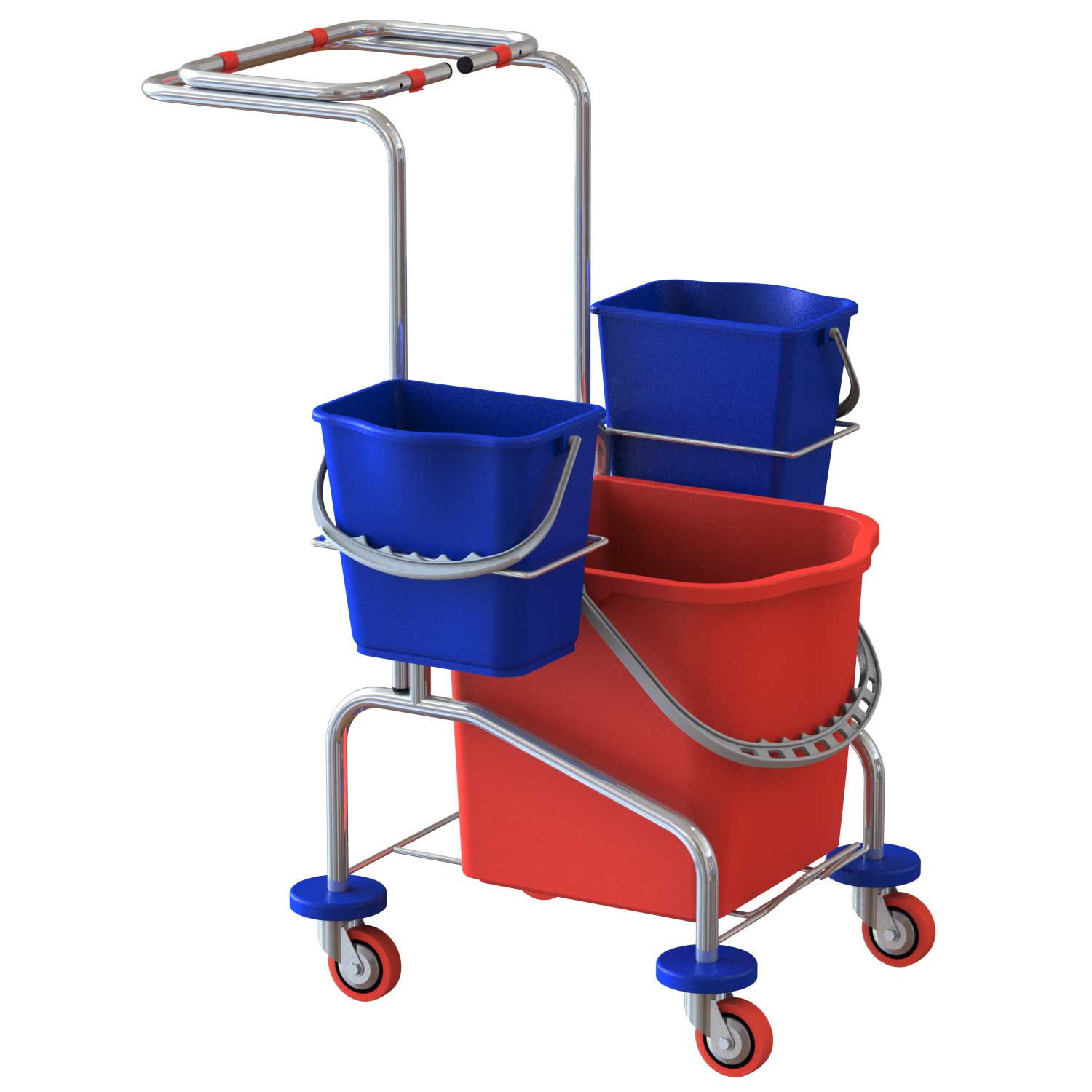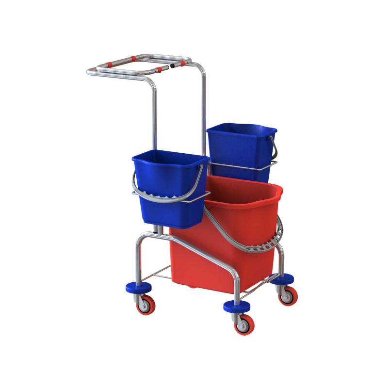 The chromed trolley DUMBO with nylon wheels is a strong and compact trolley for one-buckets washing.