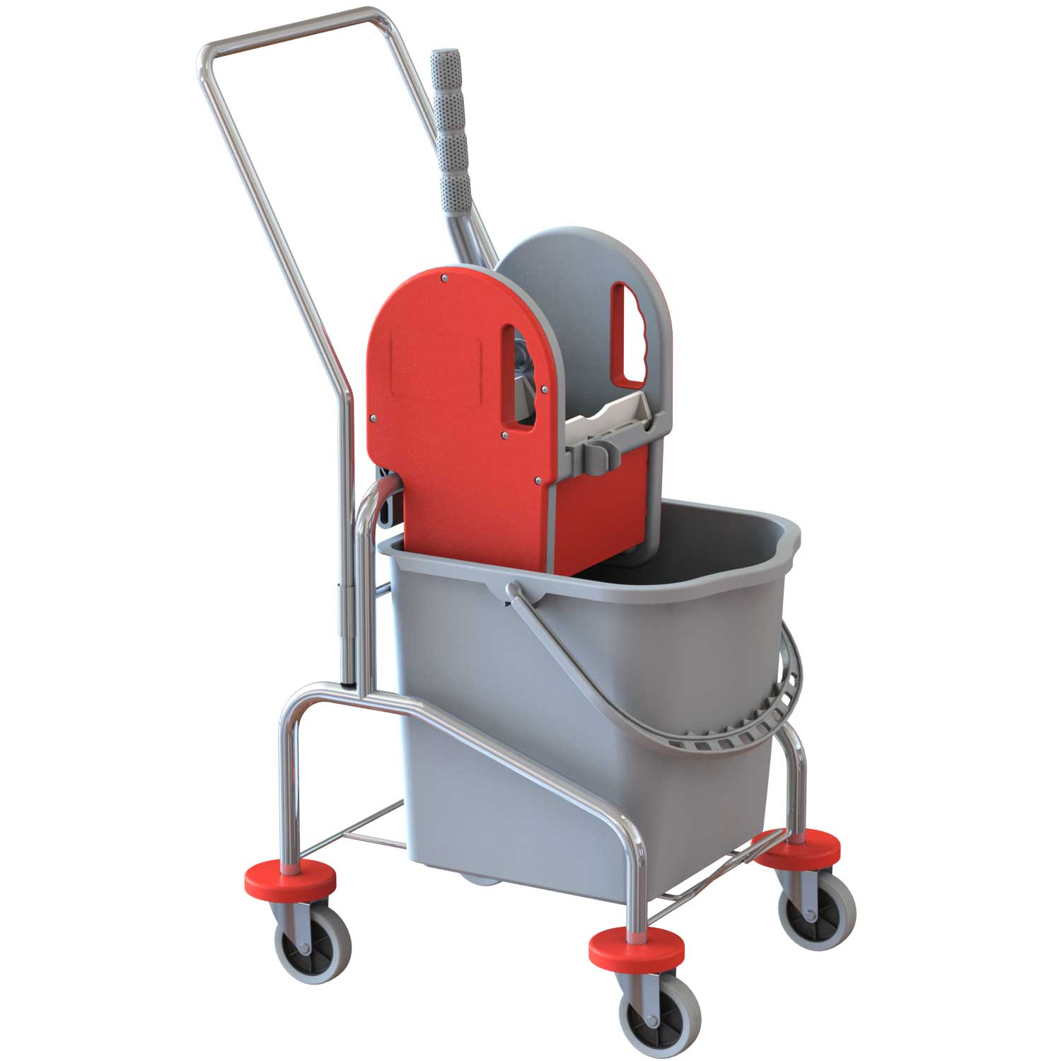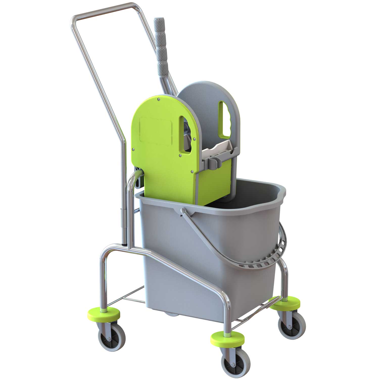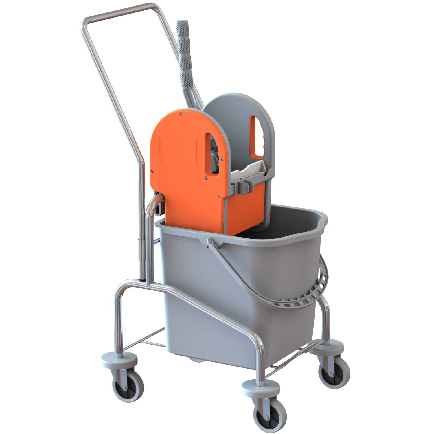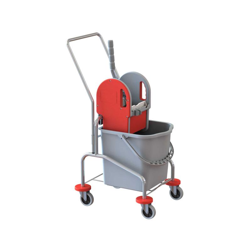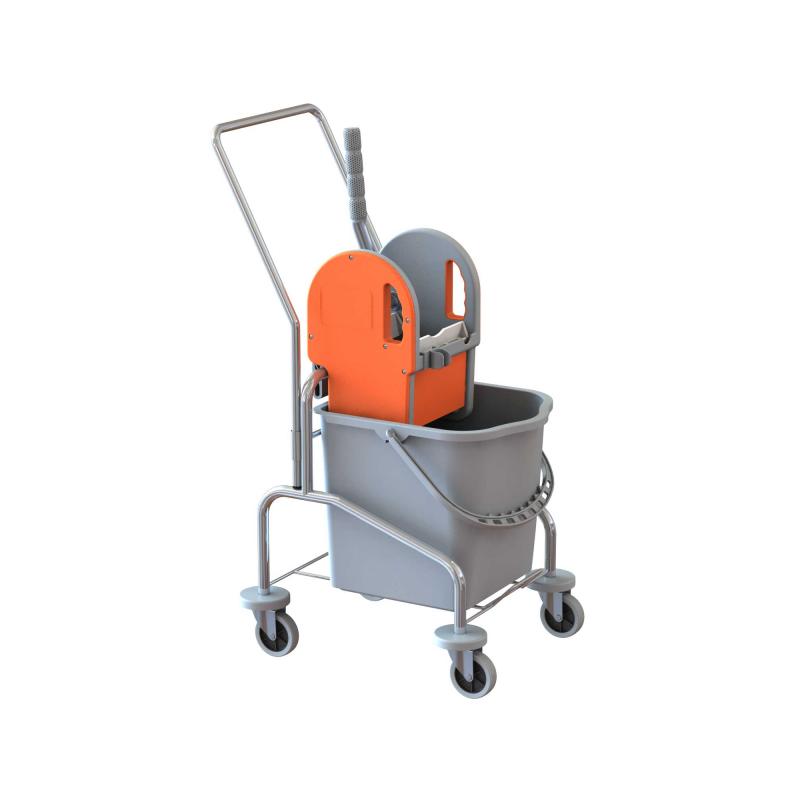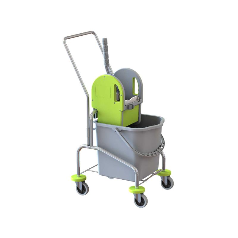 The chromed trolley ECO-TRIP 1 with nylon wheels is a strong and compact trolley for one-bucket washing.