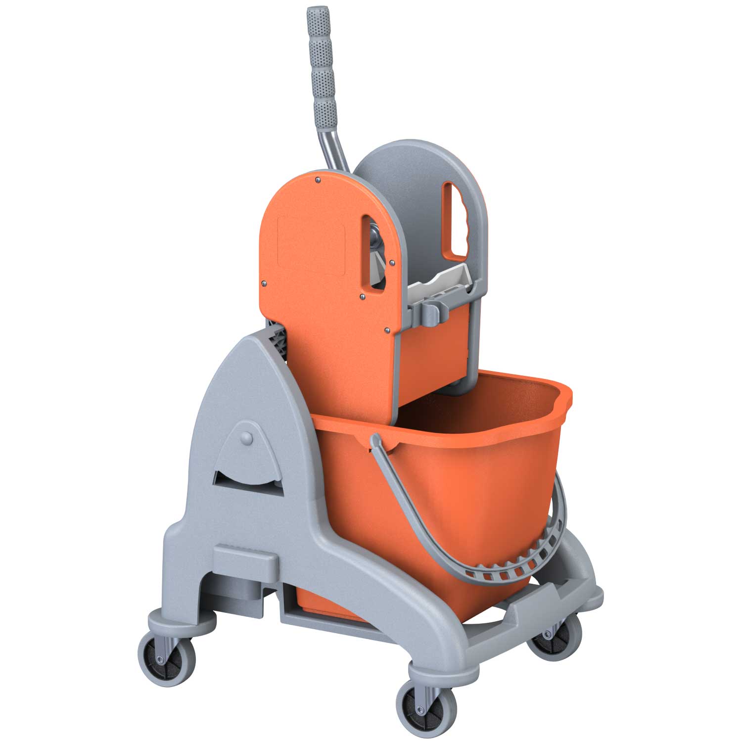 The plastic trolley VIKY 15, simple and lightweight, is a new Falpi proposal recommended in small cleaning areas for one-bucket washing.