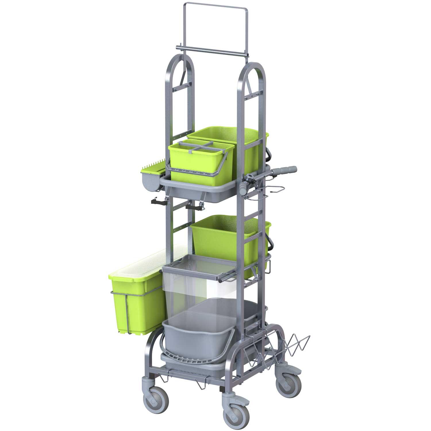 Donatello trolley is developed in height for space-saving and it can carry and store all the necessary cleaning material.