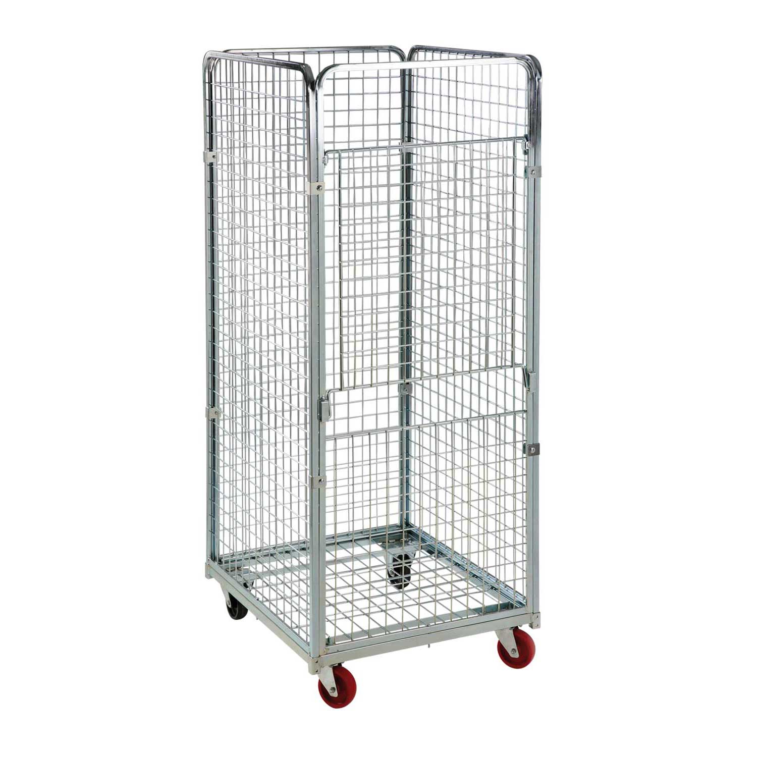 The Roll 2 trolley has three closed sides and the fourth a fold-down gate.
