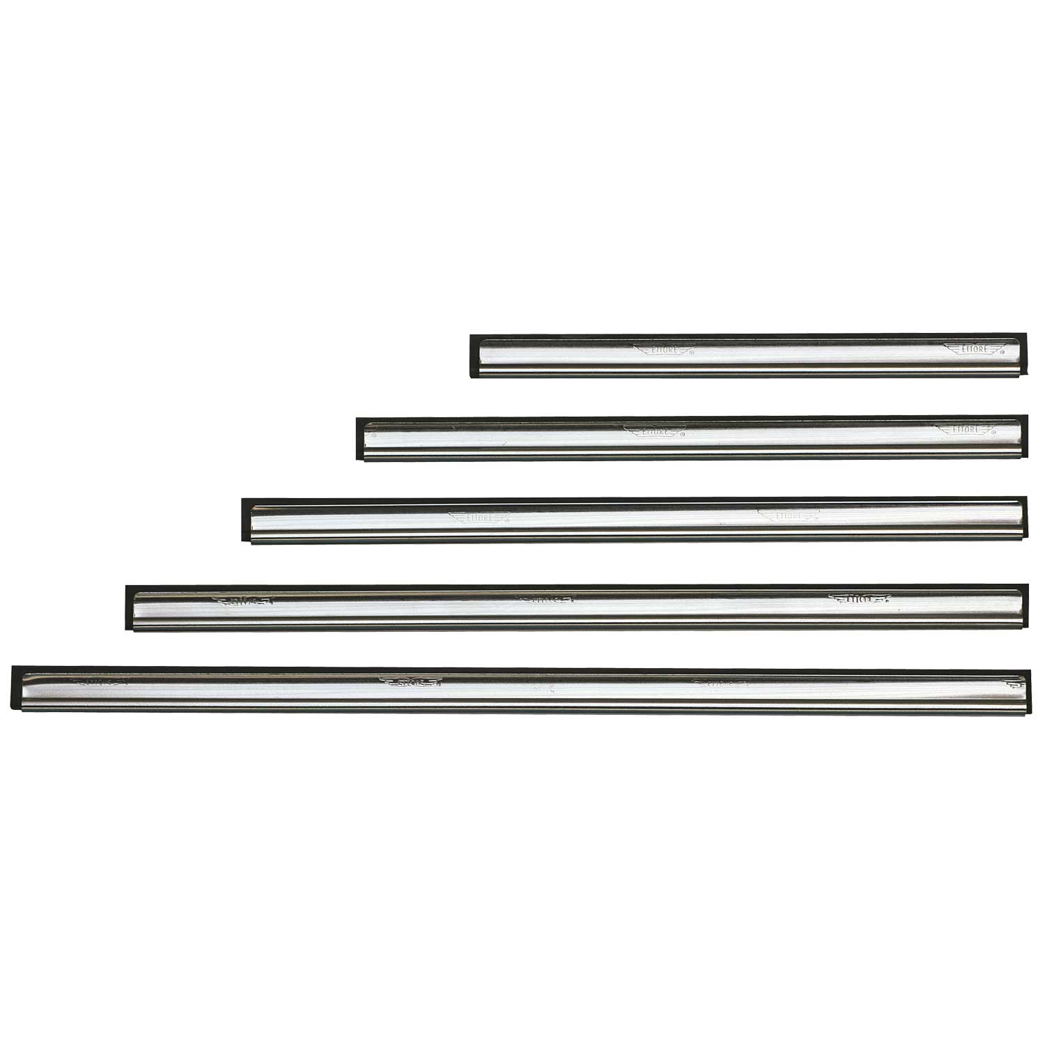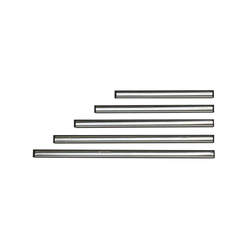 Stainless steel squeegee channel, pressed and polished, with an inserted rubber blade made from a specially formulated compound featuring a continuous, microporosity-free edge.