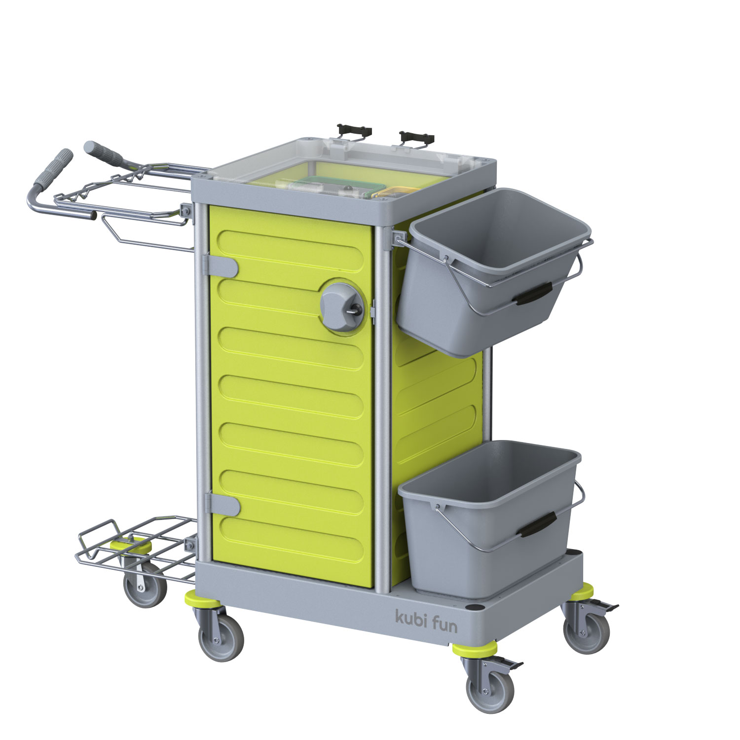 KUBI FUN, nella configurazione più professionale, è equipaggiato con ruote in metallo del diametro di 100 mm due delle quali frenate.