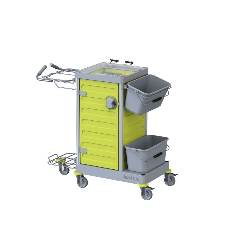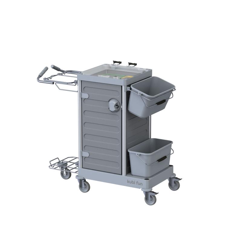 La base, di dimensioni ridotte rispetto alle basi dei carrelli della linea KubiPro, permette di utilizzare il sistema pre-impregnato occupando lo stesso spazio di un carrello con sistema tradizionale.