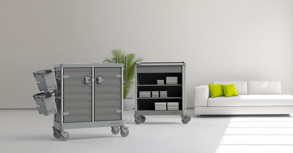 Il nuovo Kubi Silver è stato progettato per integrarsi perfettamente con i carrelli della linea hotel SOlux di Falpi, garantendo un'armoniosa coerenza estetica.