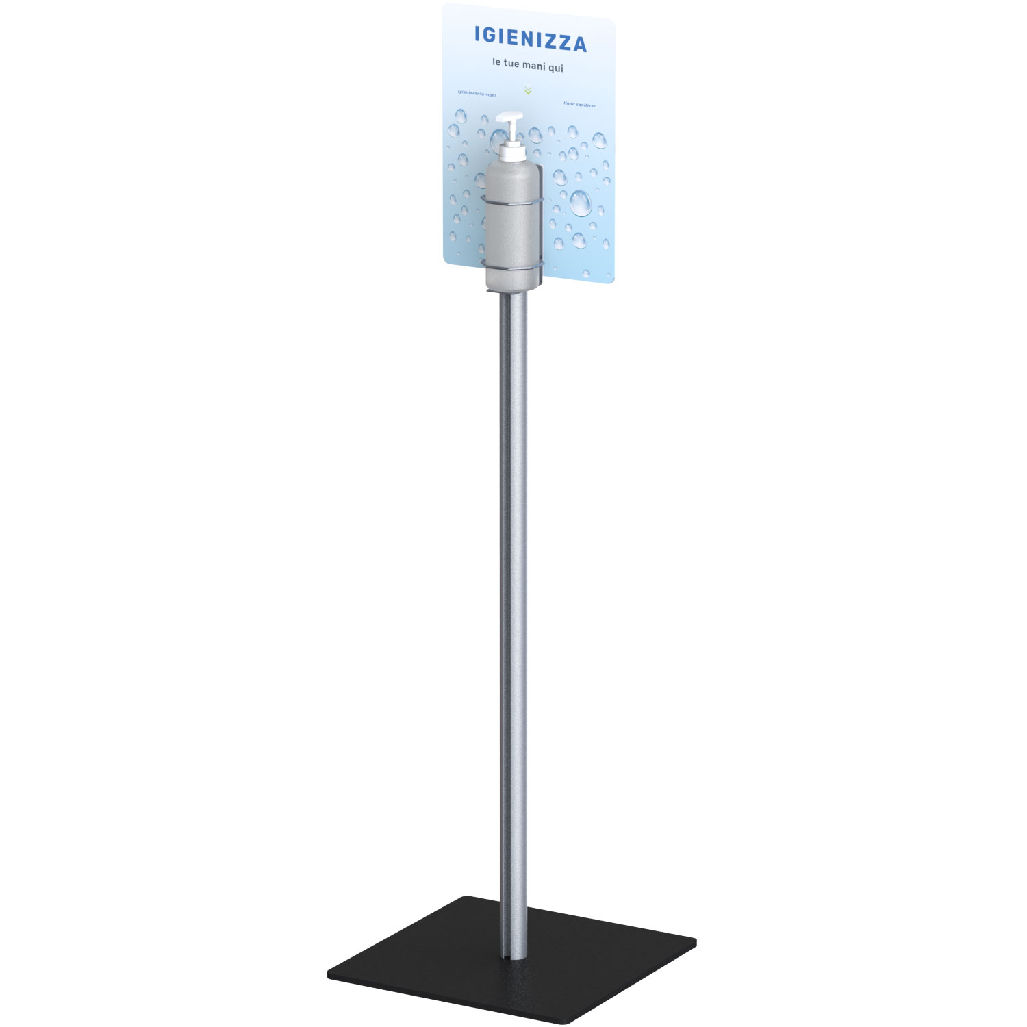 Piantana in acciaio e alluminio per dispenser o flaconi a pompetta per igienizzante mani.