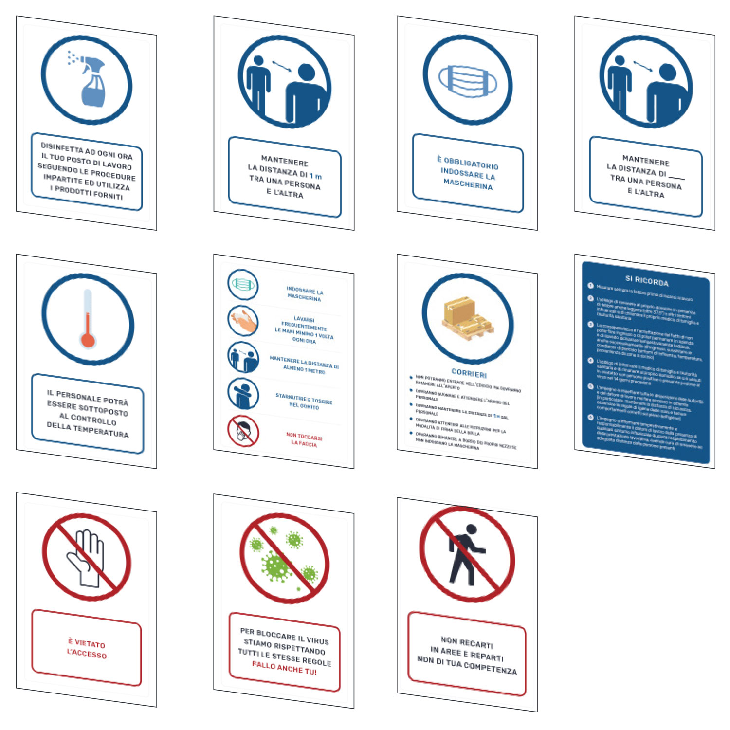Adesivi plastificati per segnaletica aziendale. Da utilizzare con la piantana a 6 tabelle (cod. 3001106) oppure con la piantana configurabile (montante cod. 3001107 + tabella), scegliendo quindi il numero di tabelle e adesivi da applicare al montante (montante cod. 3001107 e tabella completa di viti cod. 3001108).