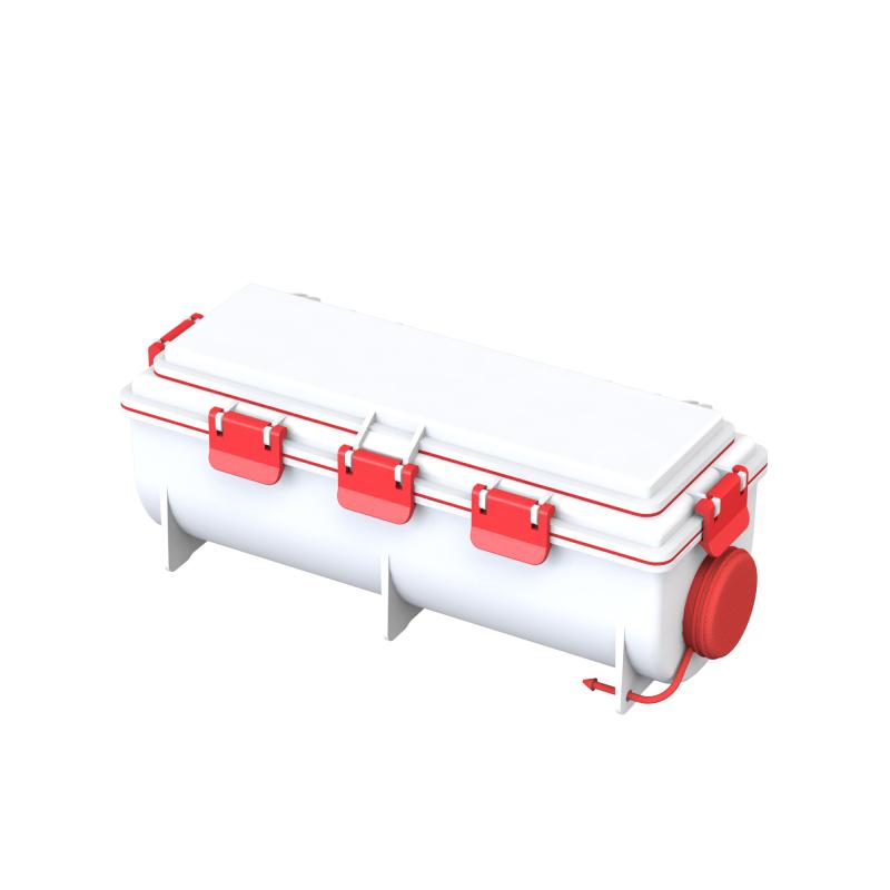 È dotato di una chiusura ermetica per preservare a lungo il tono di impregnazione e un tappo laterale per l'impregnazione del rotolo prima dell'utilizzo.