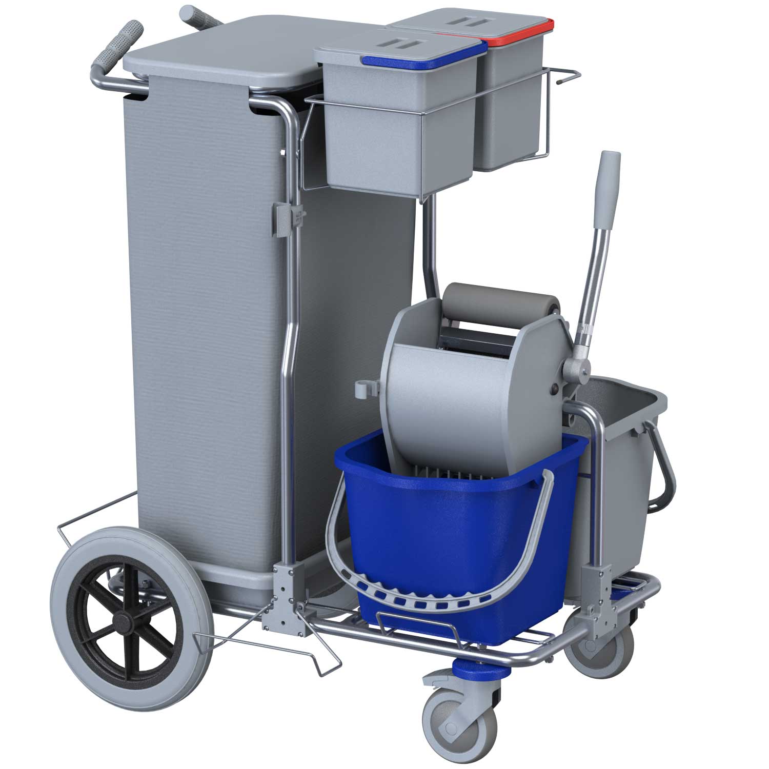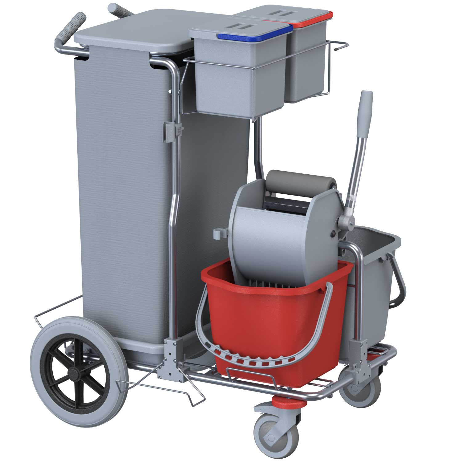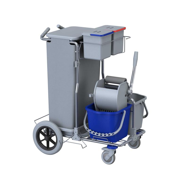Il carrello SMART 1 TOP BIG FOOT INOX fa parte della linea SMART, rinomata per la leggerezza e robustezza del suo telaio in tubolare con profilo tondo di acciaio inossidabile AISI 304. È dotato di due ruote in nylon pivottanti da 125 mm con freno e due ruote fisse da 300 mm. Le due ruote fisse di grandi dimensioni gli conferiscono un’eccellente direzionalità limitando lo sforzo fisico degli operatori. Presenta un sistema di lavaggio a piatto con doppio secchio da 15 litri e pressa Monoroll. Può essere personalizzato con gli accessori della gamma SMART.