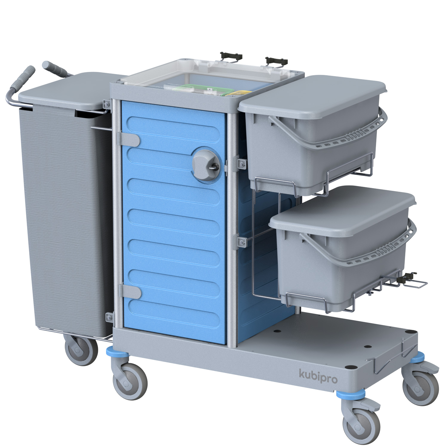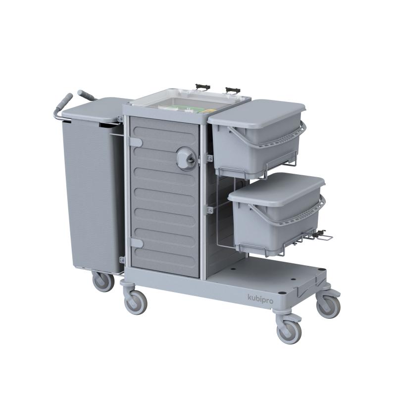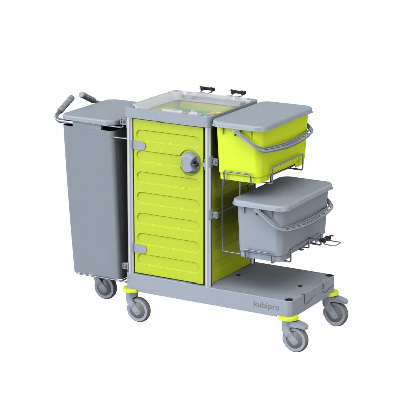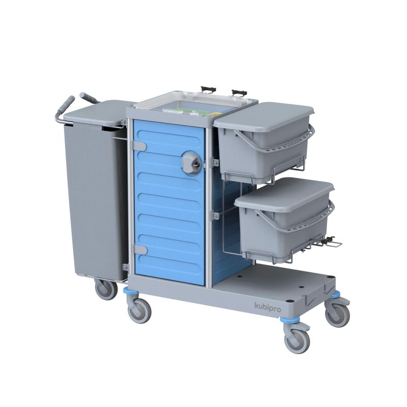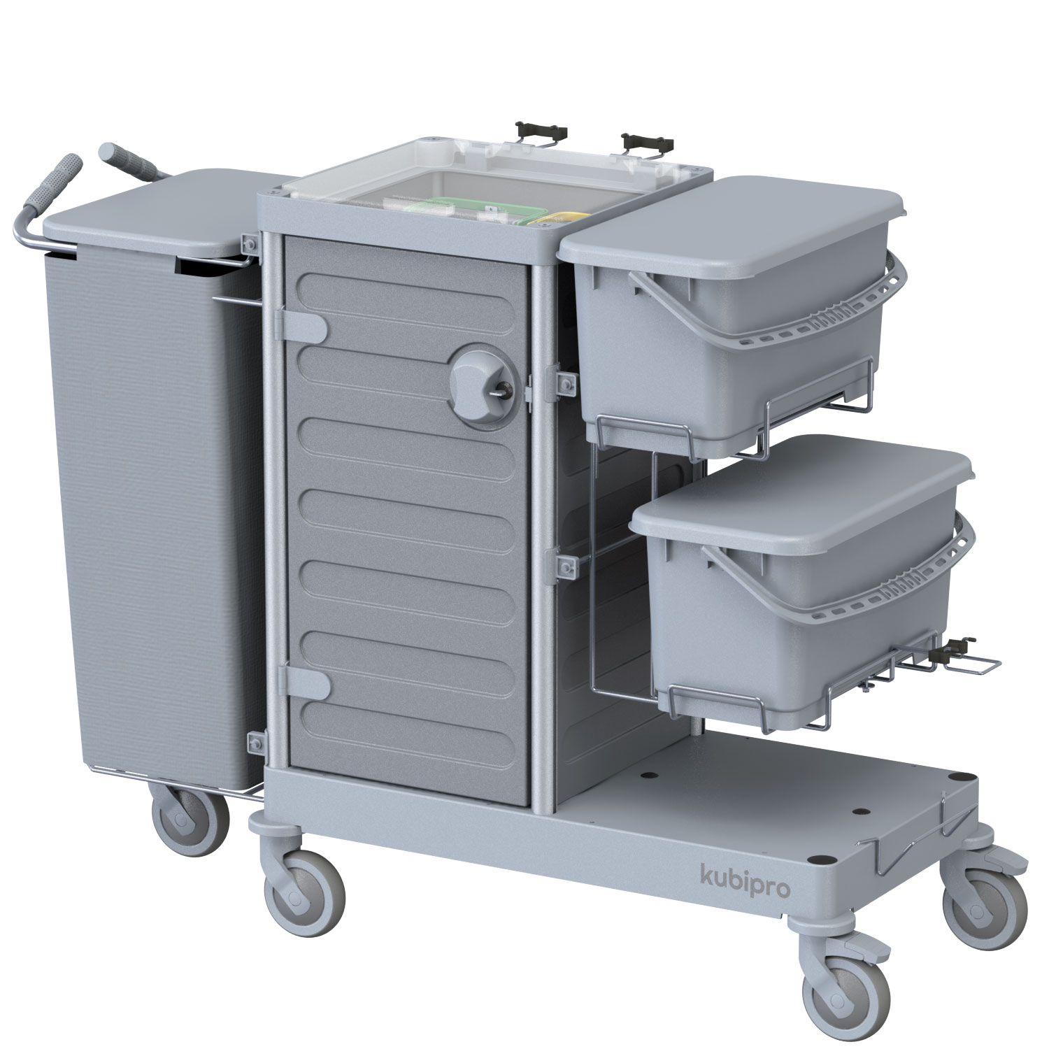 KUBI 3.1 PRO, nella configurazione più professionale, è equipaggiato con ruote in materiale plastico, montate su cuscinetti a sfere, del diametro di 125 mm due delle quali frenate.