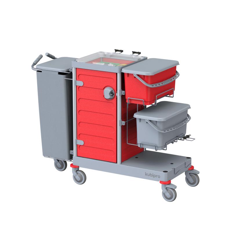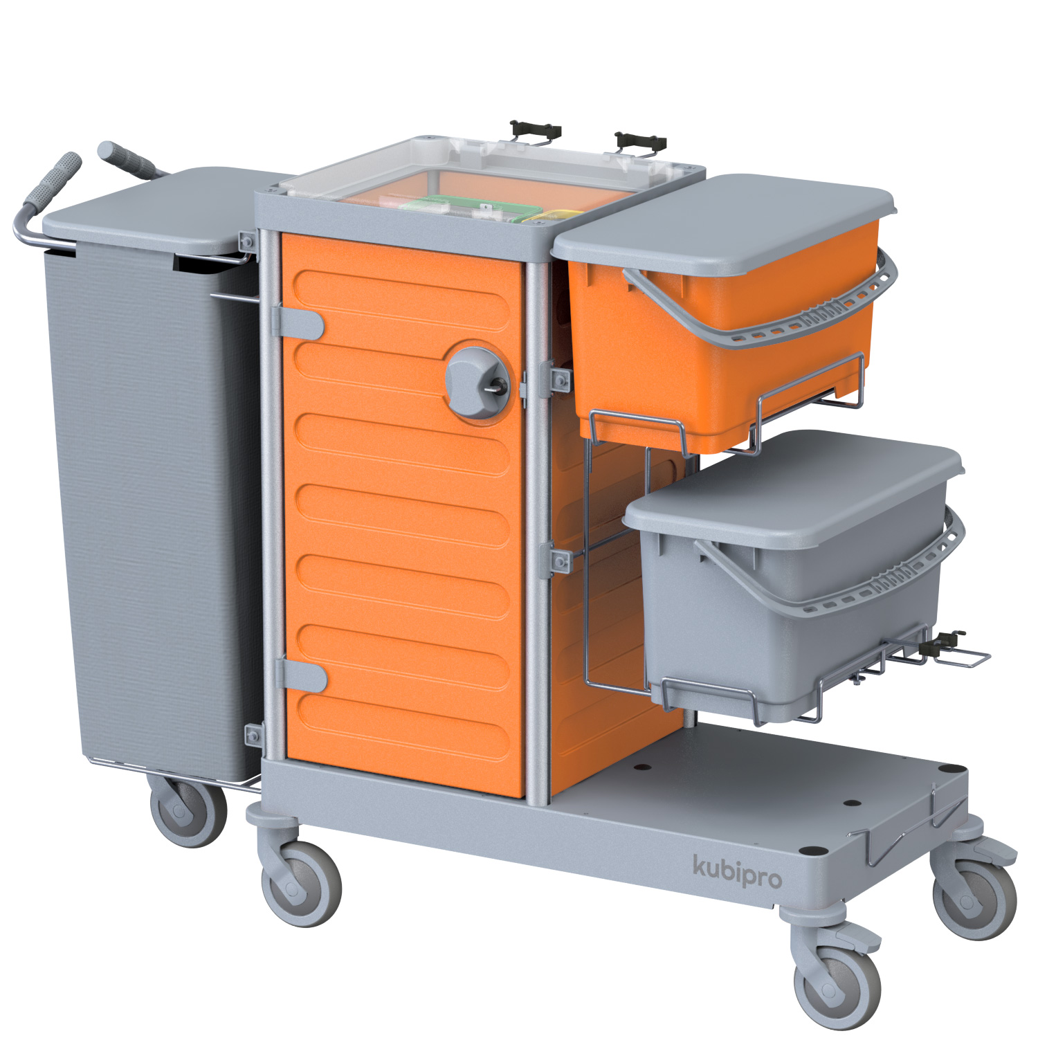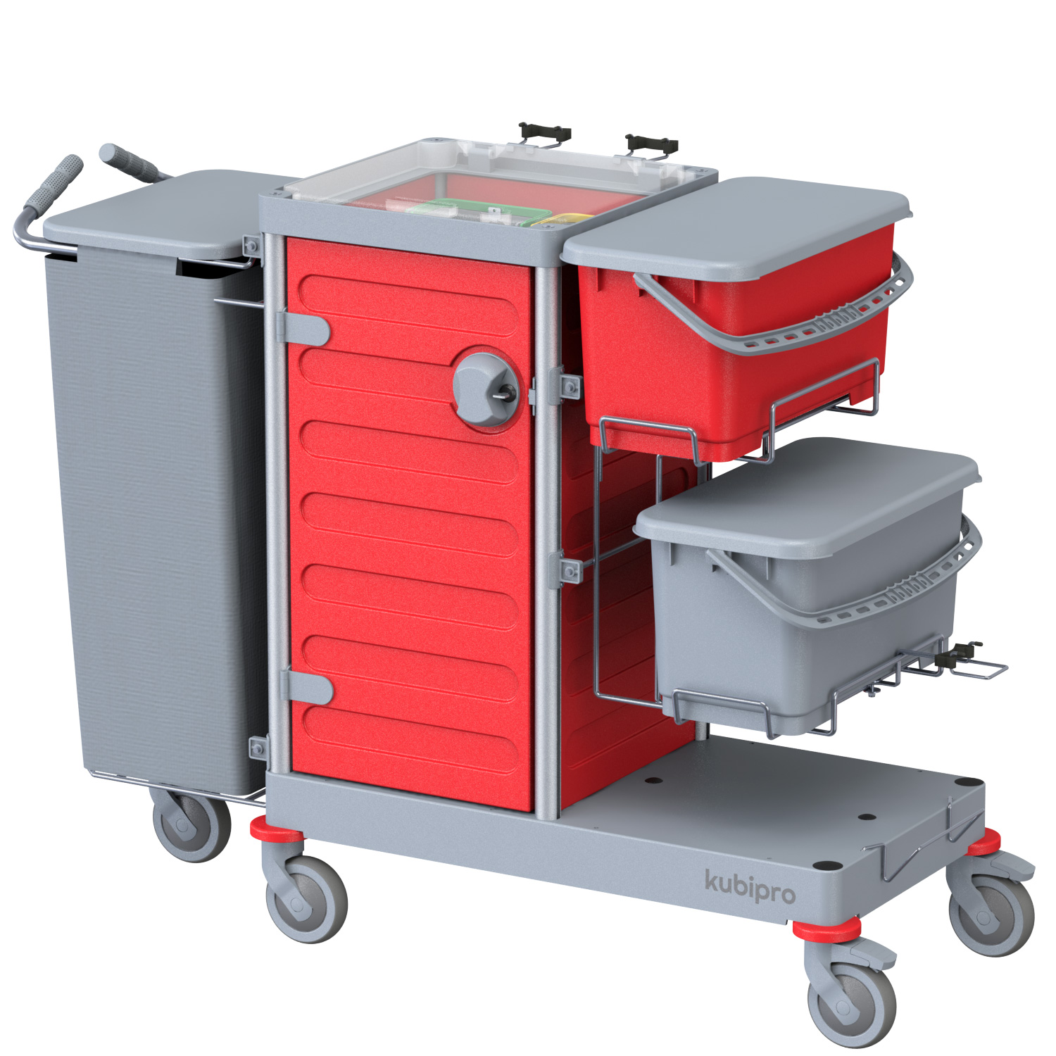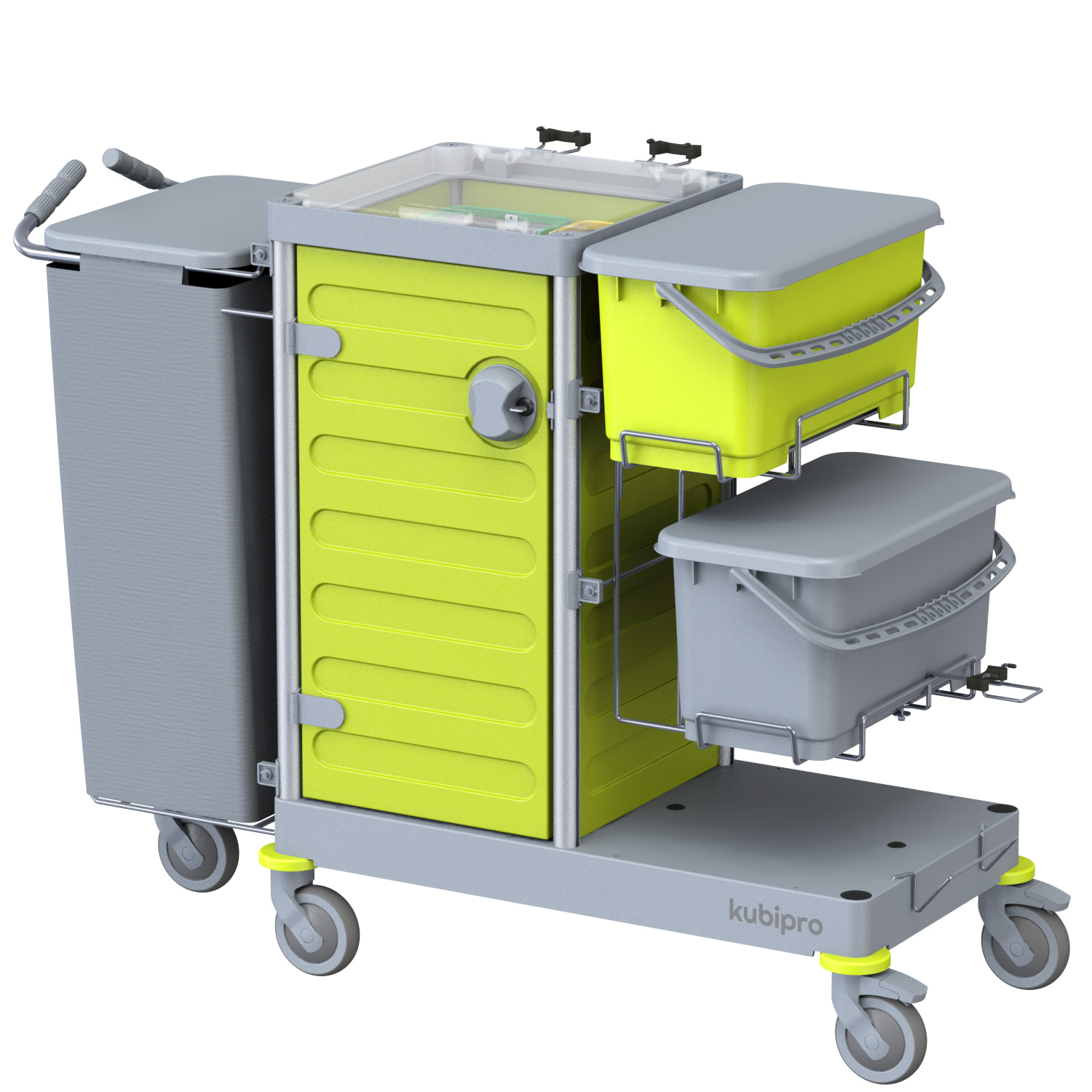 KUBI 3.1 PRO, nella configurazione più professionale, è equipaggiato con ruote in materiale plastico, montate su cuscinetti a sfere, del diametro di 125 mm due delle quali frenate.