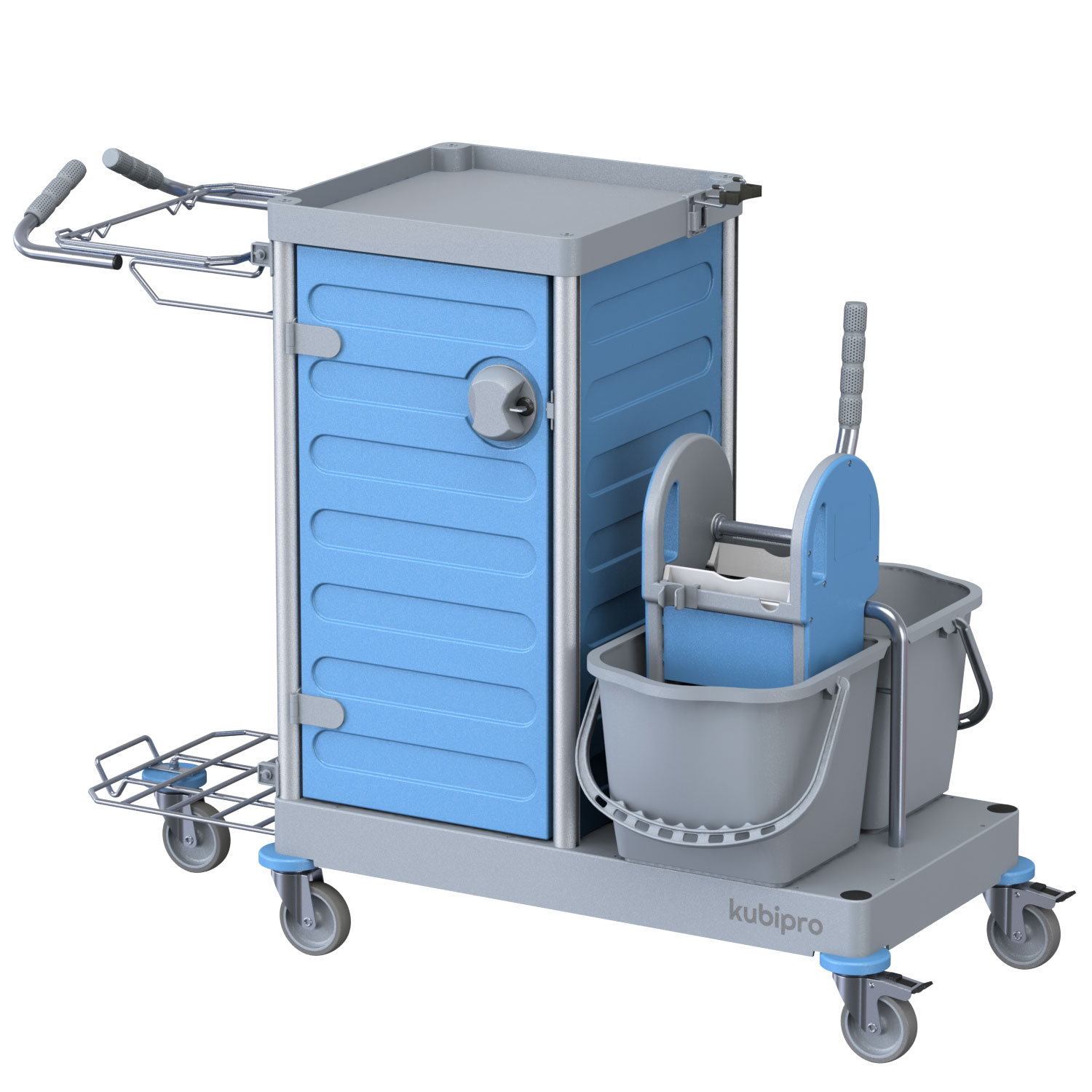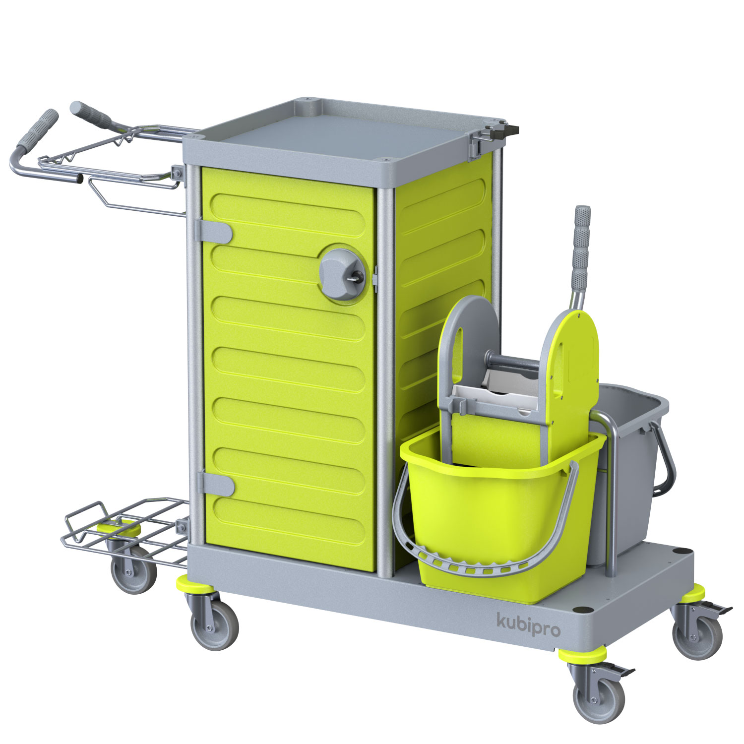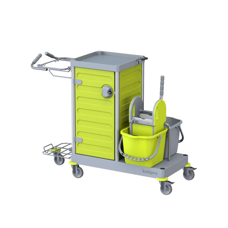 KUBI 4, economico ed essenziale, risponde alle esigenze di un carrello da utilizzarsi nelle pulizie di tutti i giorni in scuole e/o comunità.