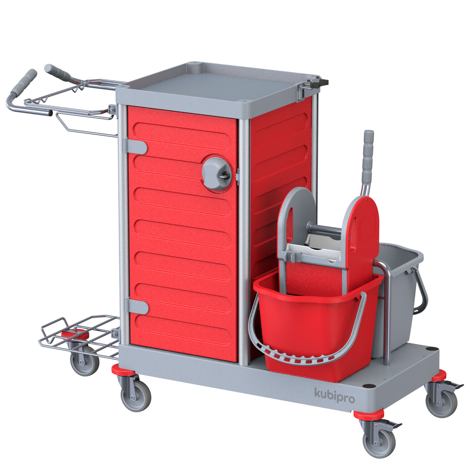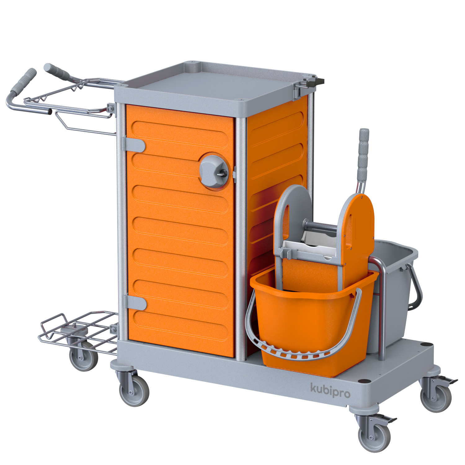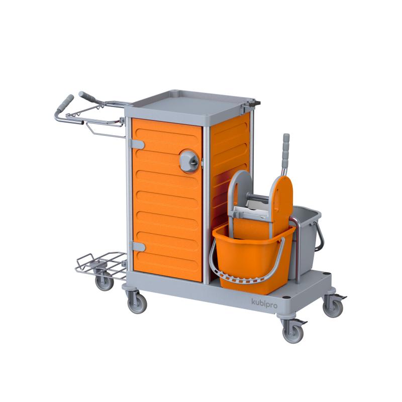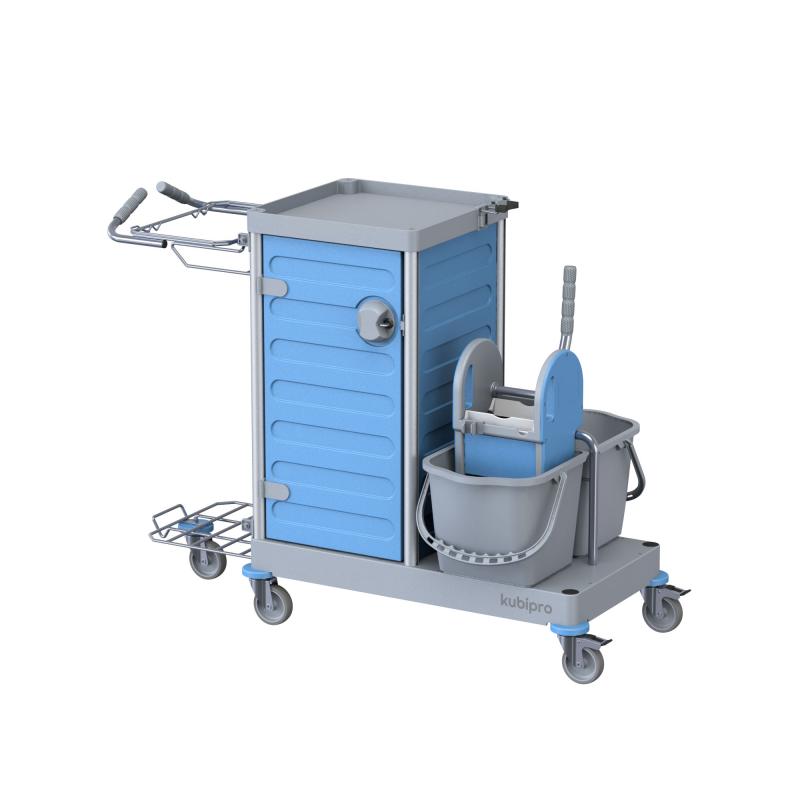 KUBI 4, economico ed essenziale, risponde alle esigenze di un carrello da utilizzarsi nelle pulizie di tutti i giorni in scuole e/o comunità.