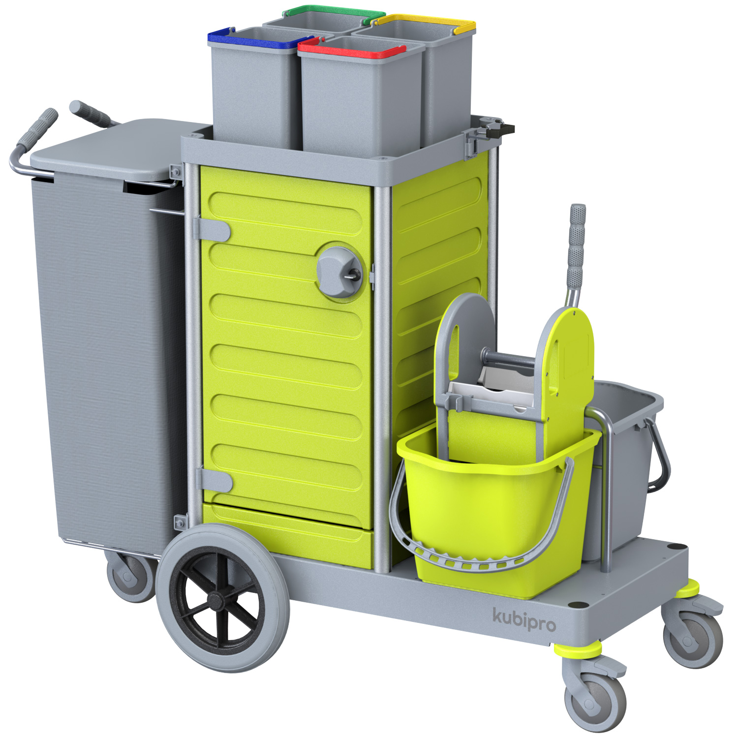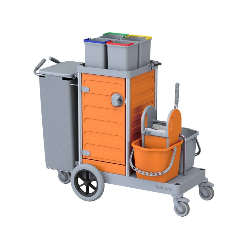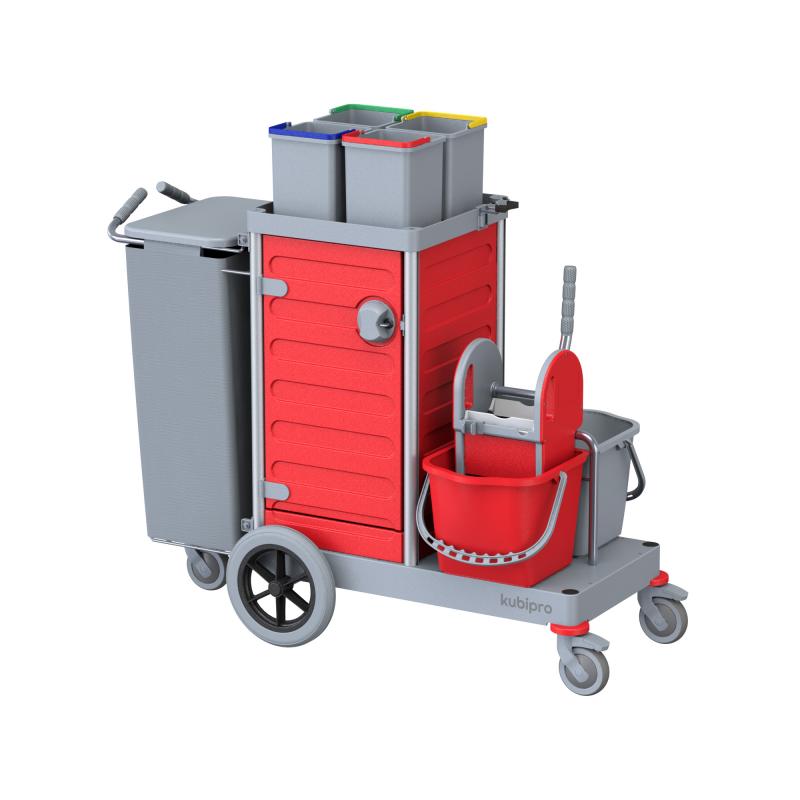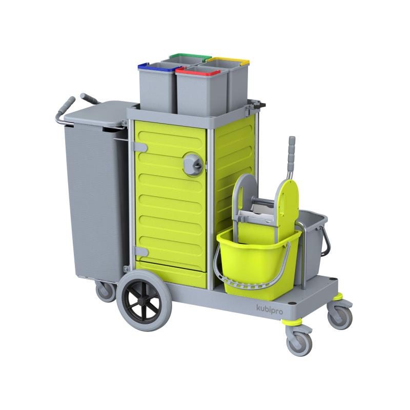 Dotato di serie di sacco in tela con coperchio e di quattro secchi per l’implementazione del codice colore.
