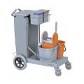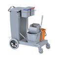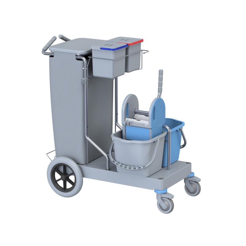 La configurazione classica del carrello per comunità e trova il suo impiego dove sono presenti pavimentazioni da lavare con metodo tradizionale mop o a piatto con pressa a rullo.