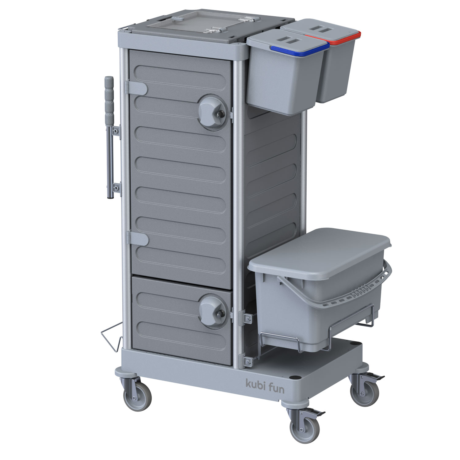 KUBI FUN, nella configurazione più professionale, è equipaggiato con ruote in metallo del diametro di 100 mm due delle quali frenate.
