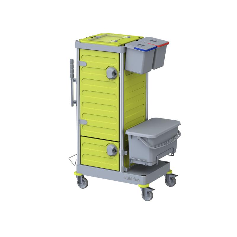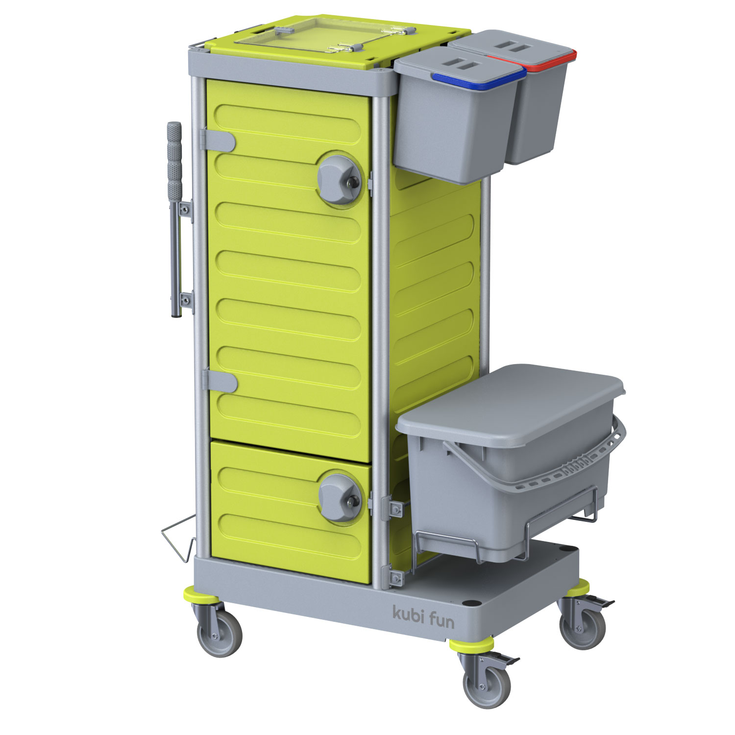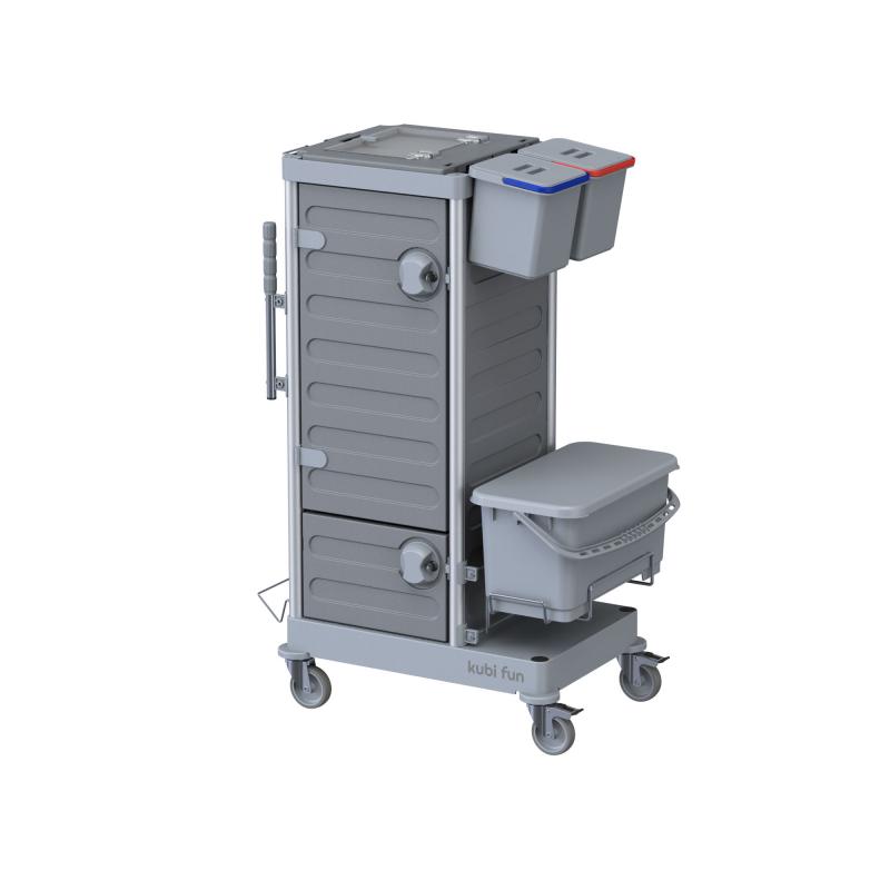 La base, di dimensioni ridotte rispetto alle basi dei carrelli della linea KubiPro, permette di utilizzare il sistema pre-impregnato occupando lo stesso spazio di un carrello con sistema tradizionale.